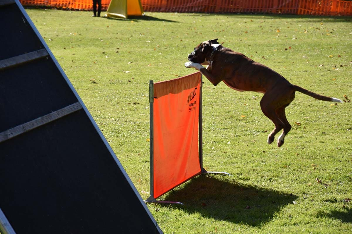Wir freuen uns sehr über dieses tolle Ergebnis. Darino hat sich von seiner besten Seite gezeigt; allerdings mit einer spannenden, boxertypischen Einlage beim „Apportieren zu ebener Erde“…..